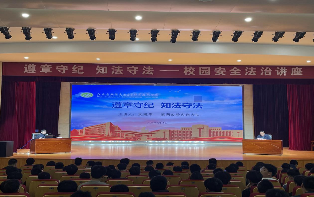 为营造我校良好的法制教育氛围,增强学生的法律意识, 3月15日,学校安全保卫处邀请无锡市公安局滨湖分局沈建华同志在励志楼大礼堂开展了“遵章守纪、知法守法”校园安全法治讲座。