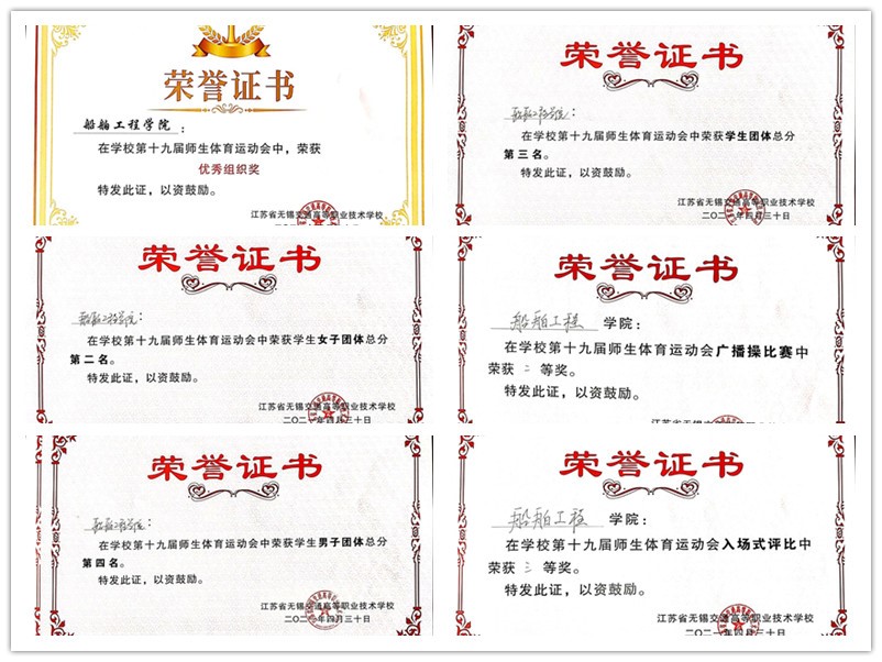 学院领导十分重视,全体师生用心参与。开幕式上,我院展示方阵、彩旗方阵、运动员方阵迈着整齐的步伐入场,他们精神抖擞、意气风发,展现了船舶学子感恩党、跟党走的决心。比赛中,我院选手表现出色,犹如离弦的箭一般在赛道上驰骋与拼搏,观众们也气势如虹,呐喊声、加油声、连绵不断。他们的声音是一种无形的力量,推动运动员们不断向前、奋勇拼搏。在全院师生的共同努力下,经过两天的比拼,我院取得学生团体第三名、广播操比赛二等奖、入场式表演三等奖、优秀组织奖等优异成绩。