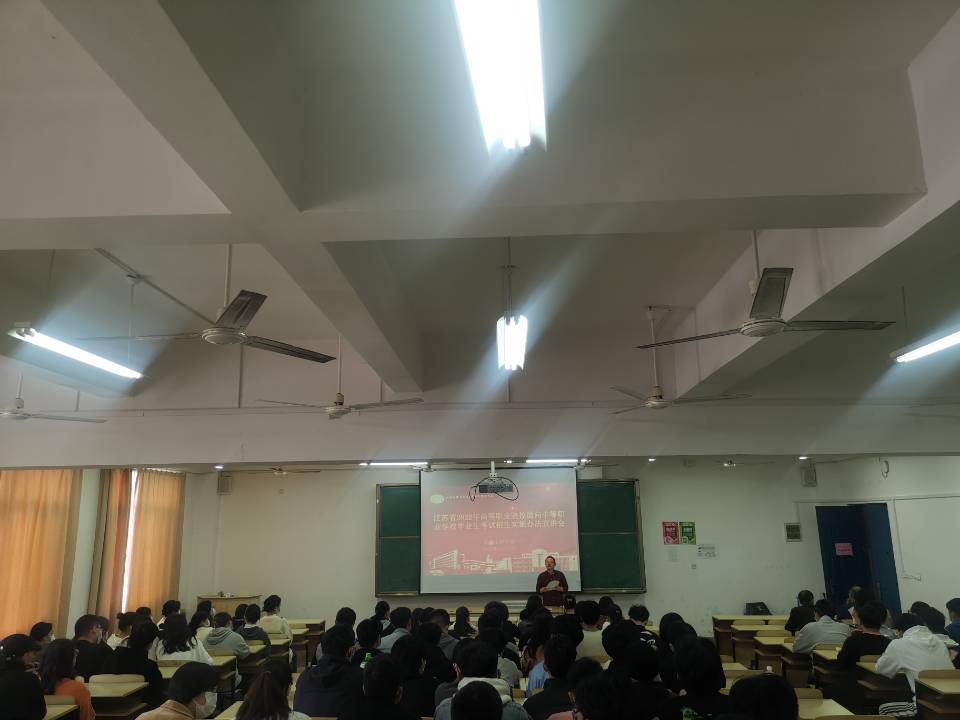 2021年11月5日,江苏省中职职教高考报名工作启动了,船舶工程学院在弘毅楼508教室召开2019级中职学生职教高考动员大会,本次大会学院院长吴志亚、学院党总支副书记赵斌、教学秘书刘新立、学工办主任杨格格、船舶制造与修理、焊接技术应用、船舶驾驶、航空服务专业的全体学生及各班班主任参加了本次动员大会。
