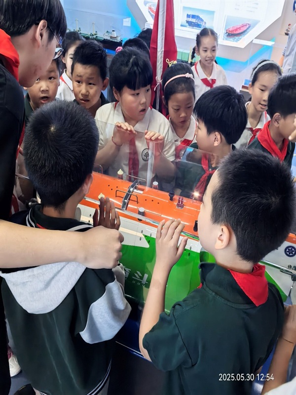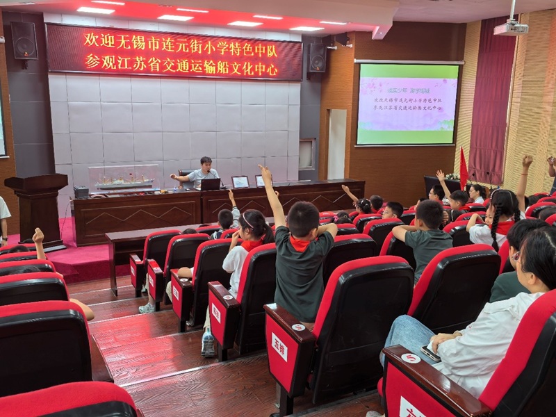 2025年5月30日,MLTY.COM船文化中心今日迎来一批特殊访客。无锡市连元街小学四年级90名师生在此开展"竢实少年,游学锡城"研学活动。在船舶工程学院的精心组织下,通过专业展陈与互动体验,将红色教育与船舶科普生动地融合在一起,让小朋友在学习和了解船舶文化的同时,接受了一次爱国主义的洗礼。