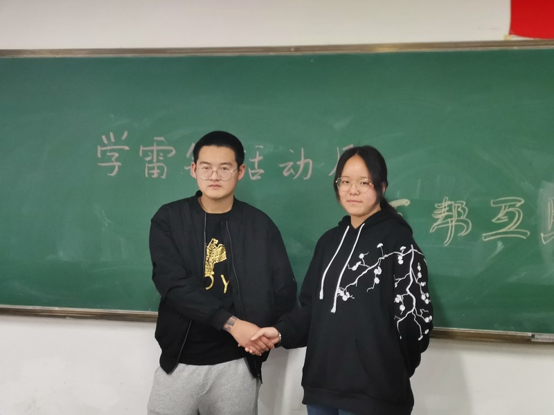 172111班级同学在“学习雷锋”活动中结合班级情况,立足身边小事、实事,将“雷锋精神”在班级同学身边扎根生芽。班主任和班级干部共同发起“互帮互助”活动,形成“互帮互助”良好的班风。同学们在帮助他人时,能够加强对自身的要求,增强帮助他人本领和才干,更好服务同学;被帮助的同学也能清晰认知自己的不足之处,并在同学的帮助下,能不断改正不足。活动期初,对班级同学进行分组,每个小组都有一名小组长负责,对应一到两名帮助对象,从课堂学习到日常生活,都能有人时刻提醒和帮助。同时,对每周帮助成果进行公示,评比进步最大的小组,将帮助具体内容公布上墙,例如:被帮助同学上课迟到次数减少,作业成绩优秀次数增加。将帮助内容量化,量化的事情慢慢质化,形成良好的转变风气。