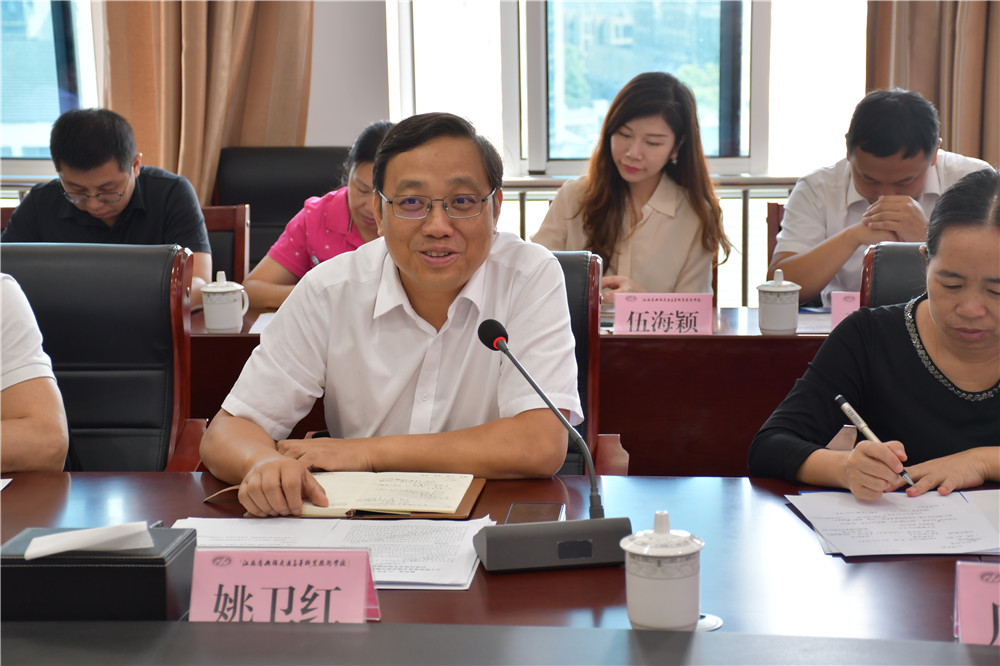 李虎书记对姚校长一行的来访表示诚挚欢迎。他简要介绍了学校基本办学情况、校企合作、中外合作办学等情况。姚校长表达了此次到访学校的主要目的是重在了解我校领航计划”建设推进过程中的先进经验和做法,进一步推进广州交通运输职业学校的“双高建设,期待与我校开展深入交流。