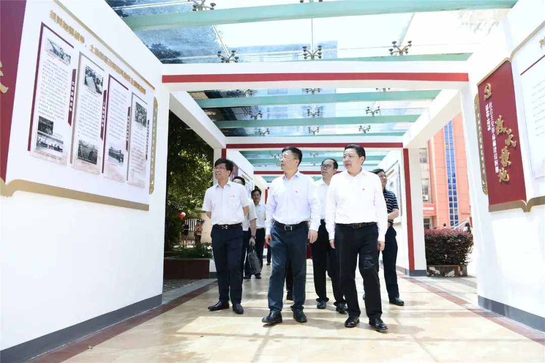 在全体领导和交校师生代表的见证下,金凌副厅长与李虎书记一起为党的光辉历程展、红船模型、十三五发展成果展揭牌。