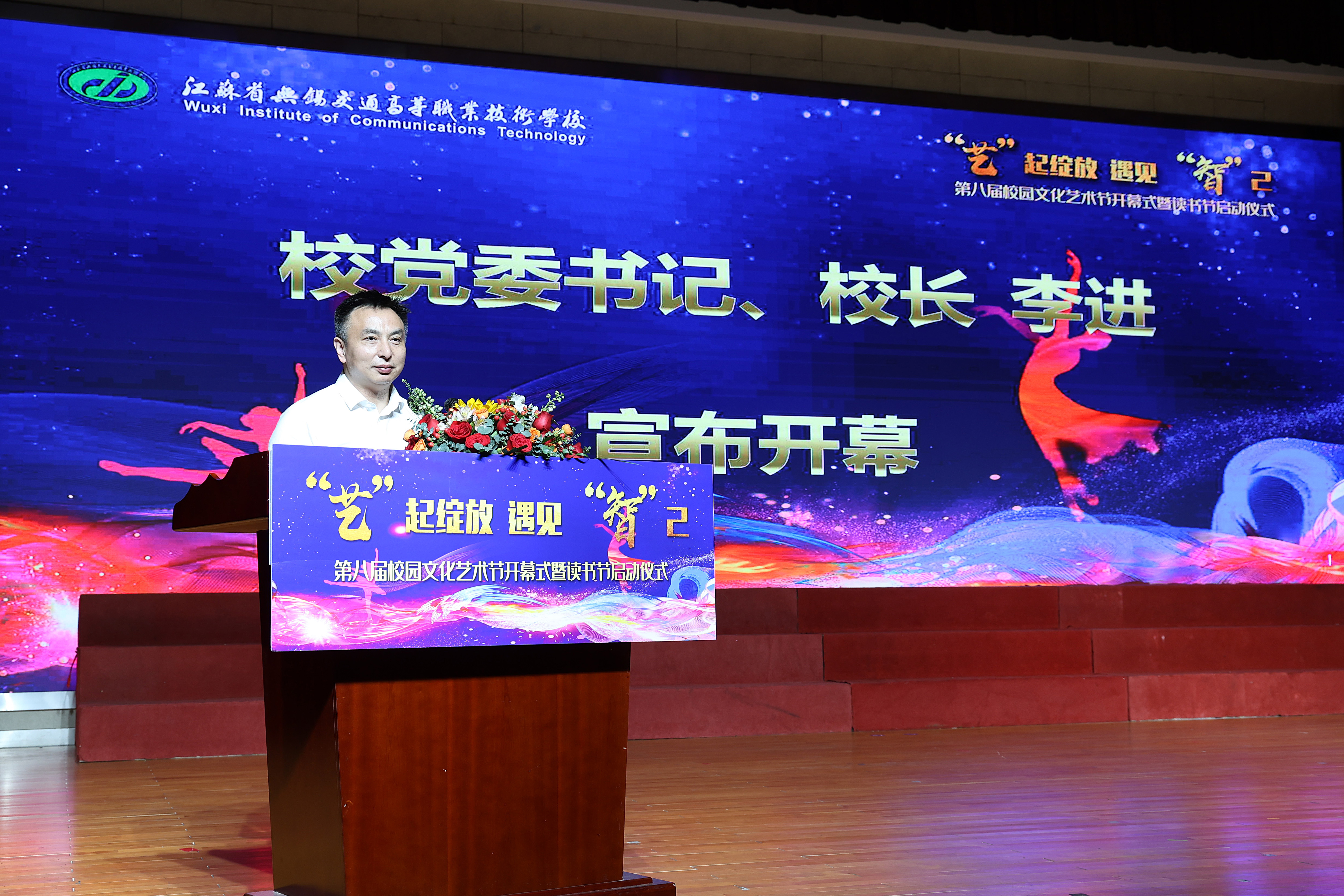 学校党委书记、校长李进宣布:“第八届校园文化艺术节正式开幕!”现场掌声雷动,气氛热烈。