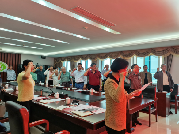 党课学习结束后,离退休党总支举行了重温入党誓词活动。