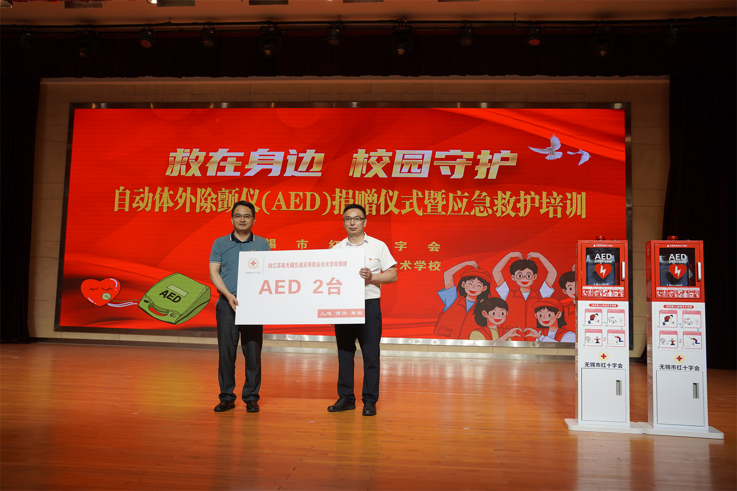AED是可被非专业人员使用的用于抢救心搏骤停患者的医疗设备。此次,无锡市红十字会向我校捐赠2台AED设备,用于支持校园紧急救护,我校将分别放在钱荣校区大学生服务中心和锡澄校区医务室门口,完善校园急救设施,保障了师生安全。