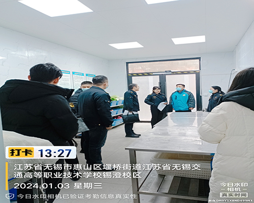 2024年1月3日,无锡市市场监督管理局联合梁溪区局和瞻江街道分局一行8人来校区食堂开展校园食品安全联合检查,本次检查的重点是现场各区域功能布局及操作流程、餐具消毒、食品留样、设备维护、个人卫生、各种台账及培训记录等。检查组还特别对病媒生物防制措施方面的情况进行了全方位检查。