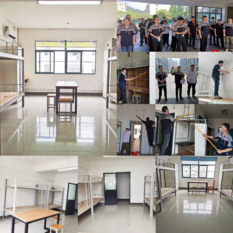 为解决新学期学生住宿问题,后勤管理处利用暑期时间将老综合楼以及动感中心共17个房间改造成学生宿舍,增设136个床位、17张生活桌、28个生活柜。