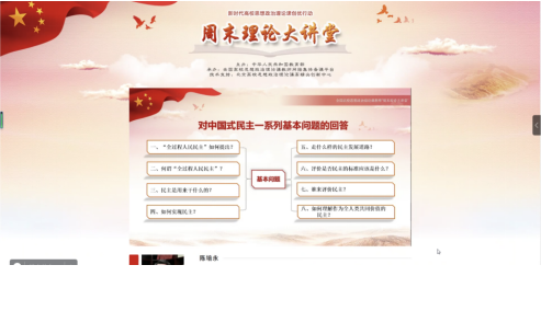 我院20思政教师聆听了陈培永教授主讲的全过程人民民主与中国式民主理论的系统构建”课程这堂课让我们深刻认识到民主是全人类的共同价值,是中国共产党和中国人民始终不渝坚持的重要理念这对我院教师如何上好有关“中国特色社会主义民主的鲜明特征与显著优势”的思政课有着启发性影响,提高了我们理论教学水平。