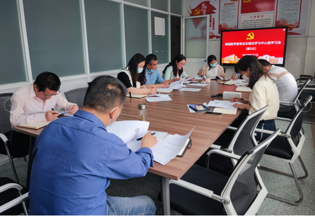 5月7日下午16:00,基础教学部党总支在部门会议室召开理论学习中心组第3次学习会,基础教学部班子成员、总支委员、支部书记等通知参加了会议,会议由党总支副书记杨凤琴主持。