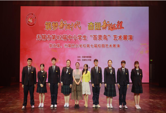 草树知春不久归,百般红紫斗芳菲。5月16日,无锡市第42届中小学生“百灵鸟”艺术展演暨直属、市属民办学校第七届校园艺术展演在无锡市少年宫举行。基础教学部推送的朗诵《请党放心 强国有我》(指导教师:周琪、张婉杰和王涛),在全市各级各类学校选送的作品中脱颖而出,获得综合专场金奖。