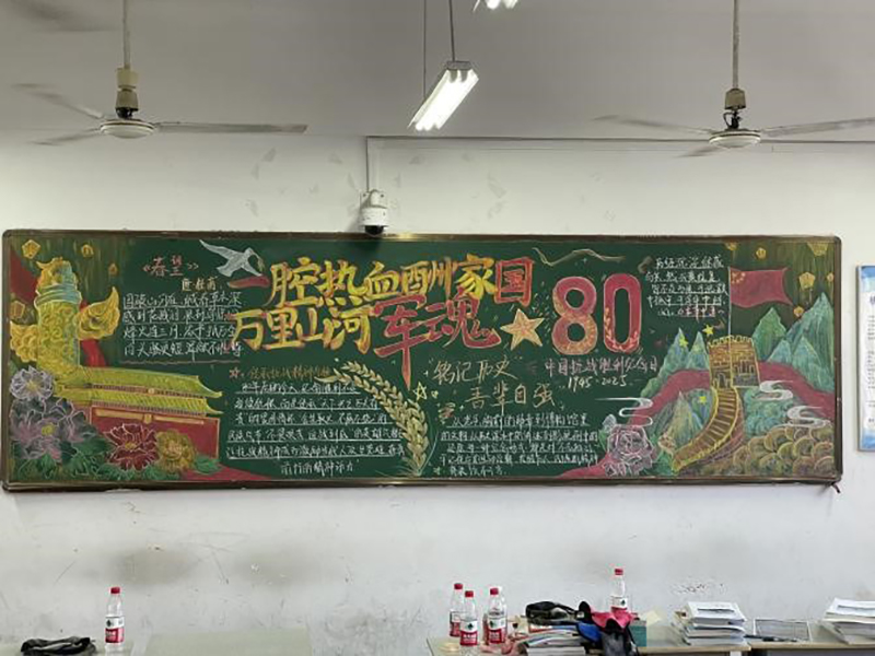 今日,MLTY.COM机电工程学院的25级新生教室内焕新出彩,一幅幅主题鲜明的黑板报凝聚了新生们的心血,以“庆祝中国人民抗日战争胜利80周年”为统一主题的视觉教育阵地正式亮相,成为校园内一道厚重而鲜活的红色风景线。