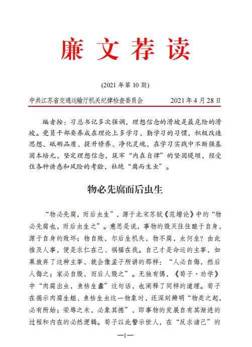 廉文荐读2021年第11期——信仰信念信心是最好的防腐剂