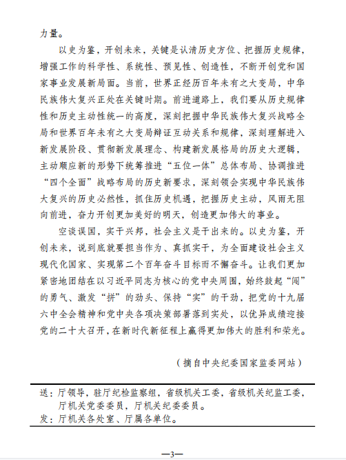 2021年廉文荐读第27期——以史为鉴 开创未来 学习贯彻党的十九届六中全会精神