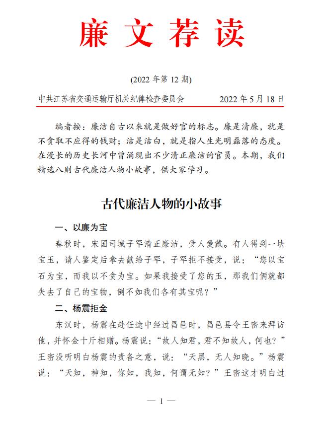 2022年廉文荐读第12期——古代廉洁人物的小故事