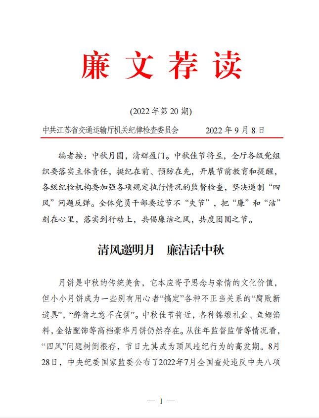 2022年廉文荐读第20期——清风邀明月 廉洁话中秋