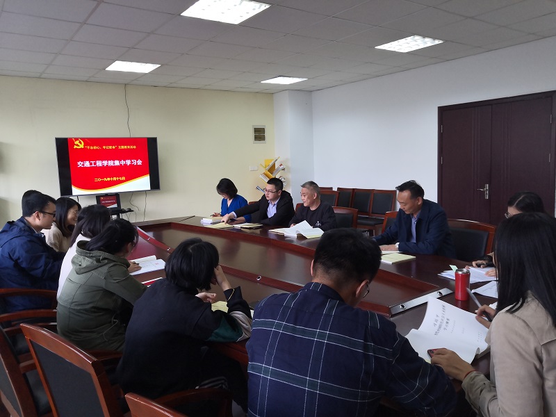 根据学校党委的部署和学习计划,2019年10月17日下午,交通工程学院党总支组织学院全体党员在院会议室召开“不忘初心、牢记使命”主题教育集中学习会。会议由学院党总支书记徐建新主持,建设工程管理教研室党支部书记李俊领读了“习近平新时代中国特色社会主义思想学习纲领”一至七章;全体党员观看了《初心力量使命担当》主题教育片。