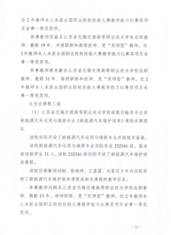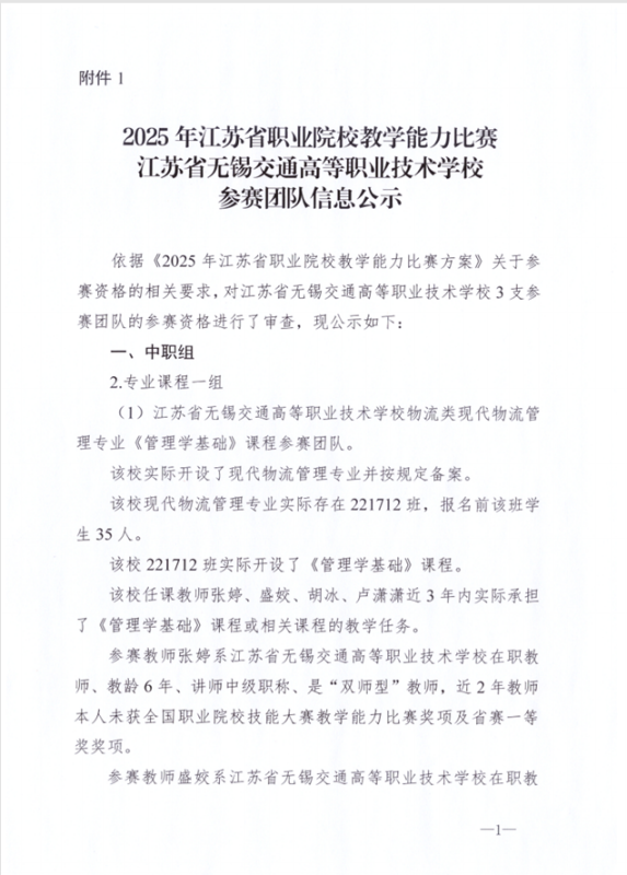 MLTY.COM物流类现代物流管理专业《管理学基础》课程参赛团队、自动化专业类机电一体化技术专业《机械制图与CAD技术基础》课程参赛团队和道路运输类专业类新能源汽车运用与维修专业《新能源汽车维护保养》课程参赛团队经校级比赛,市赛选拔推荐参加省赛。依据《2025年江苏省职业院校教学能力比赛方案》关于参赛资格的相关要求,对学校3支参赛团队的参赛资格进行了审查,现予以公示。