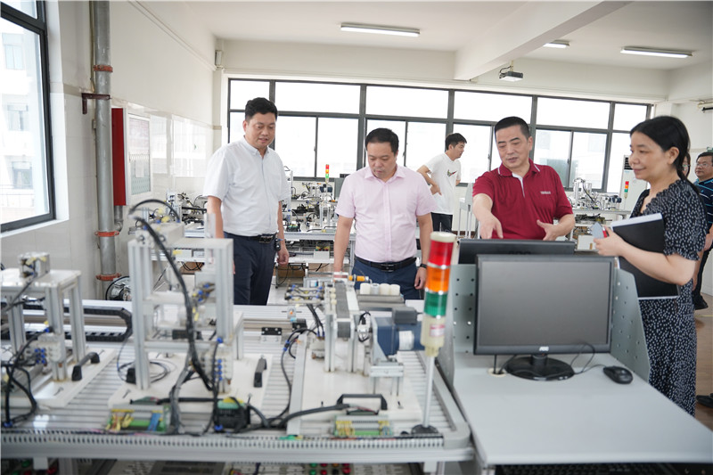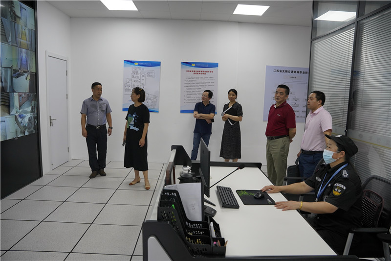 季处长一行先后走访了学校江苏省交通装备工业机器人、焊接实训基地、电气自动化技术实训基地、智慧监控室、职工之家、防疫物资库等重点场所,详细了解学校人员管理、防疫物资储备、学生开学准备、意识形态工作责任制落实、实训基地建设等情况。