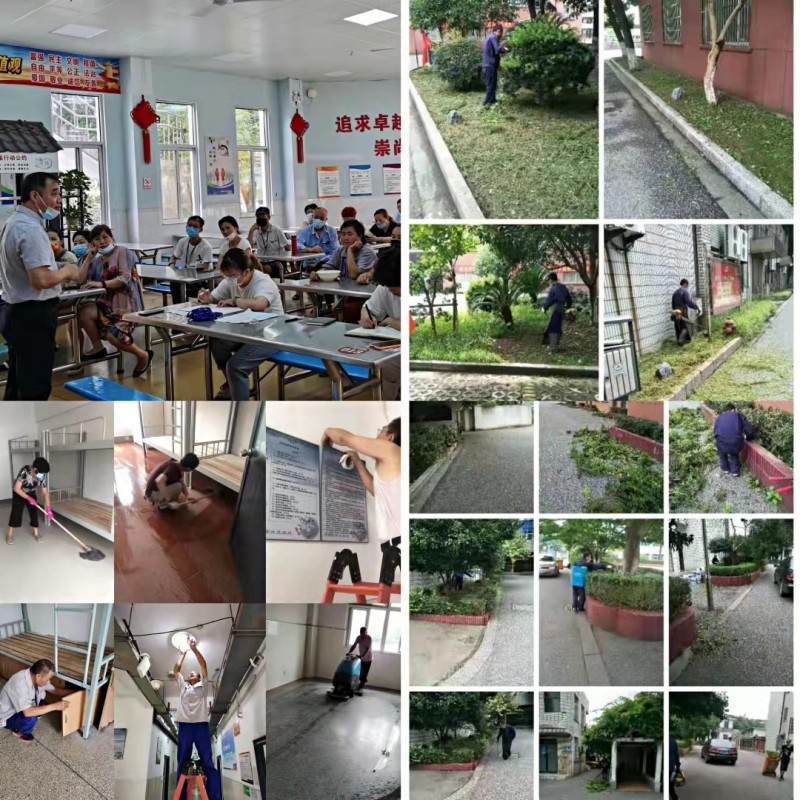 高温酷暑挡不住后勤人美化校园的热情,不因炎热而懈怠,坚持对物业公司的监管,对校园花草进行及时修剪,对卫生死角及时清理,保持垃圾及时清理外运,疫情防控期间,定期对校园进行全面的消杀工作,确保暑期校园依然美丽整洁。