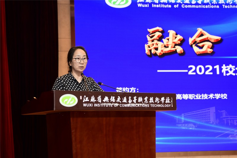 6月10日,学校在致远楼大礼堂举行了与江苏扬子江船业集团公司、约克(无锡)空调冷冻设备有限公司、苏州棕榈湾文旅发展有限公司、无锡市兴隆船舶有限公司、六洲酒店管理(上海)有限公司、华晨新日新能源汽车有限公司、无锡市石油化工设备有限公司、无锡市毅恒工程检测有限公司8家单位的校企合作签约暨揭牌仪式。江苏联合职业技术学院对外合作处副处长刘群,无锡市工业和信息化局产业人才与合作处处长尹清涛,无锡市发展和改革委员会社会处副处长刘海,无锡市教育局高职处副主任王晓忠、无锡市职业技术教育学会副会长虞伟民、无锡市文旅集团鼋头渚景区管理处副主任任刚、学校党委书记、校长李虎,副校长耿兴华和企业代表出席了签约仪式。签约仪式由学校党委副书记、纪委书记朱雨兰主持。