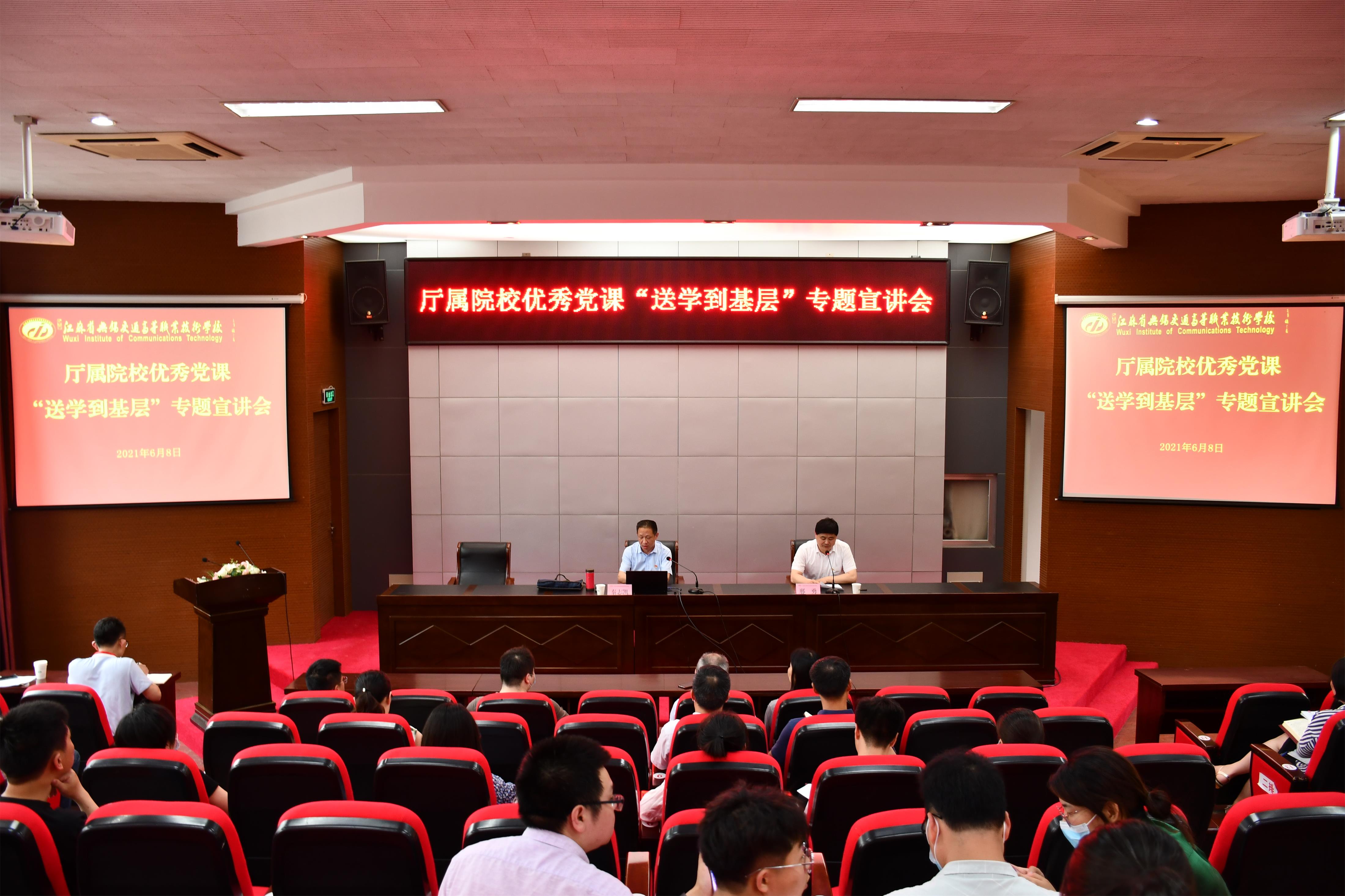 6月8日下午,江苏省交通运输厅厅属院校思政教师优秀党课“送学到基层”《唇亡齿寒:抗美援朝的艰难抉择》专题宣讲会在学术报告厅举行,60多名党员教师参加学习。