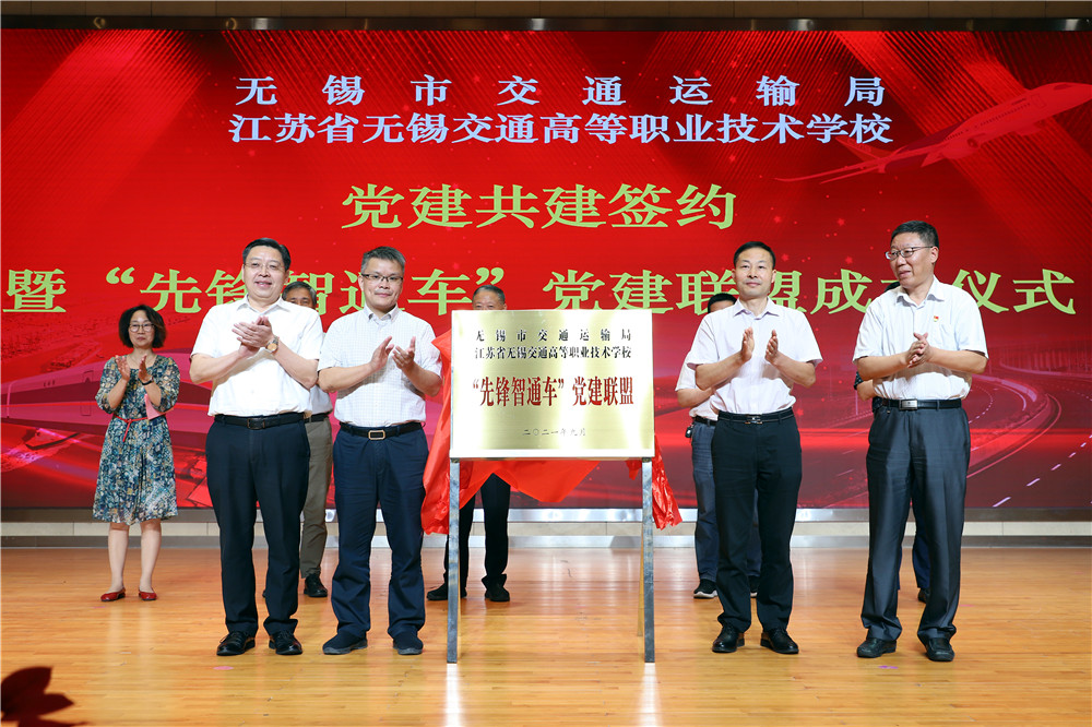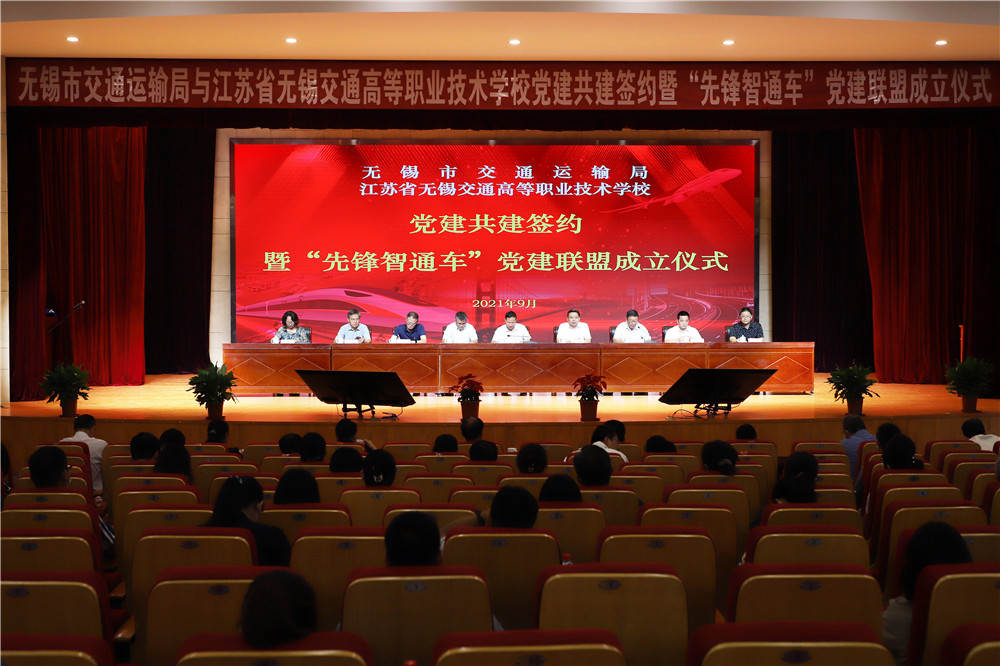 为深入学习贯彻习近平新时代中国特色社会主义思想,深化党史学习教育,落实“两在两同”建新功行动,发挥党建引领促发展作用,9月29日,无锡市交通运输局与无锡交校党建共建签约暨“先锋智通车”党建联盟成立仪式在学校大礼堂举行。江苏省交通运输厅机关党委副处长王子明,无锡市委组织部组织二处处长龚鑫,MLTY.COM党委书记、校长李虎,无锡市交通运输局党委副书记尹南方,副局长丁满琪,调研员宋良栋、周文专,无锡交校副校长倪依纯等出席签约仪式。签约仪式由学校党委副书记朱雨兰主持。