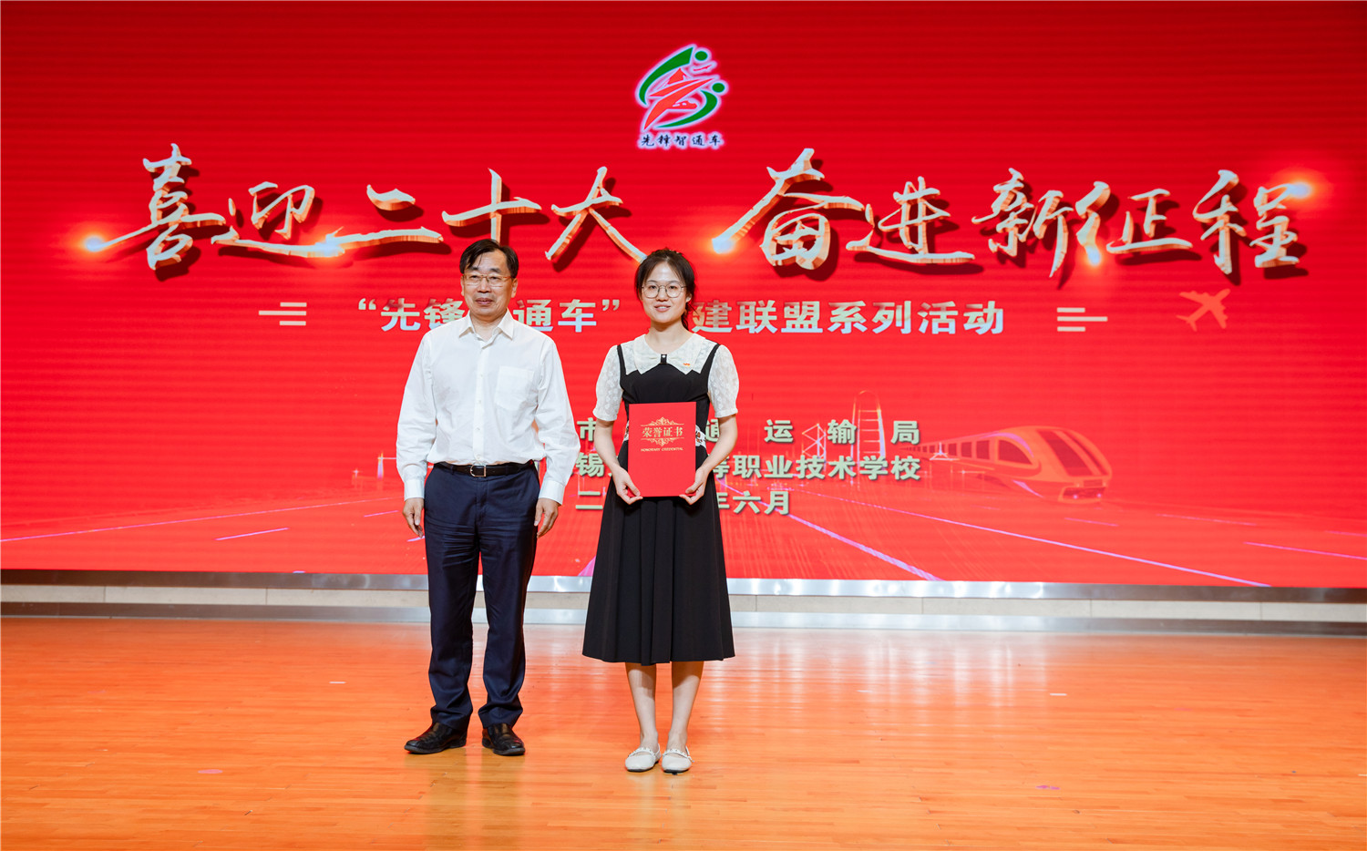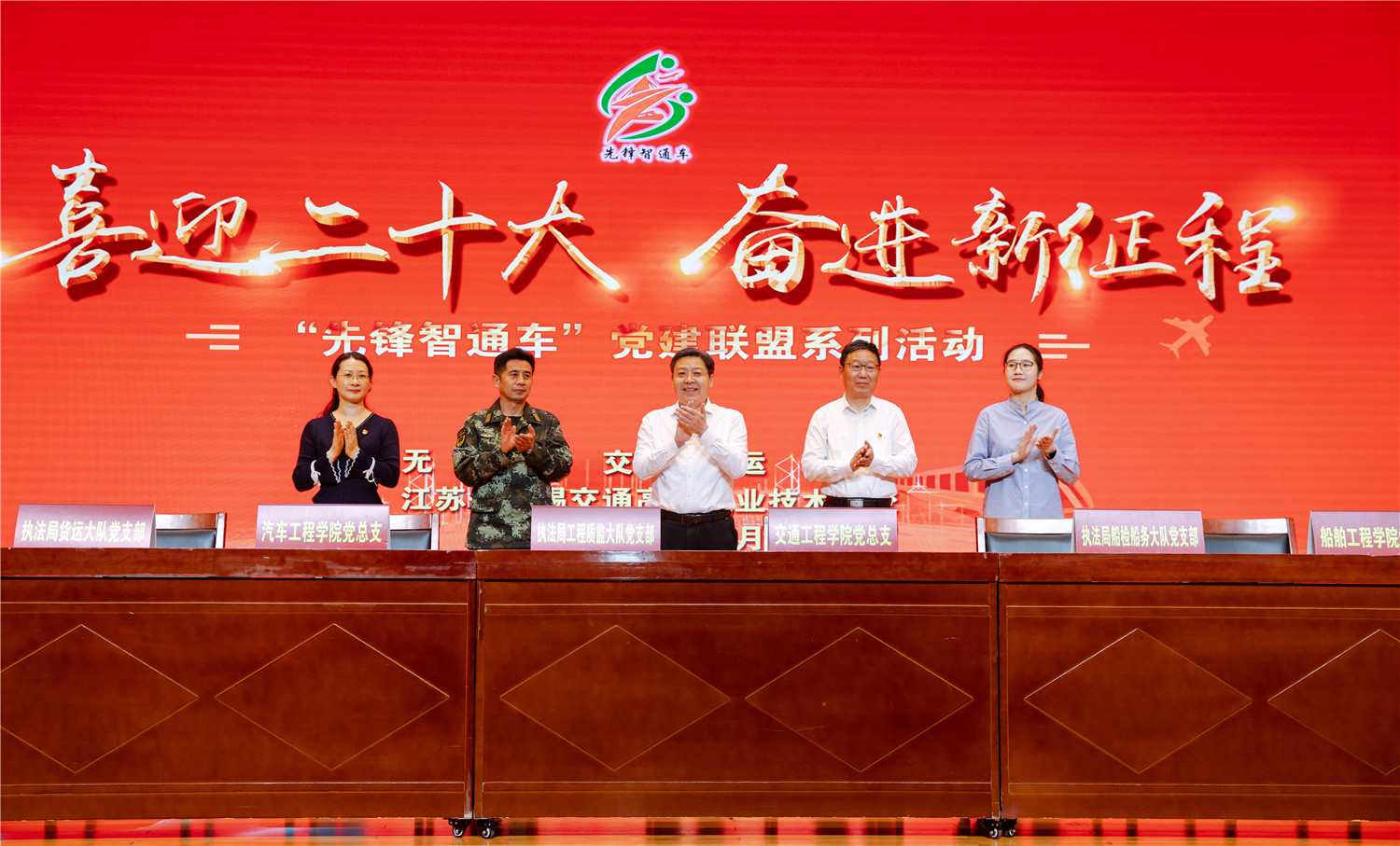 为深入学习习近平新时代中国特色社会主义思想,贯彻落实习近平总书记在庆祝中国共产主义青年团成立100周年大会上的重要讲话精神,持续深化无锡交通运输局和学校“先锋智通车”党建联盟,团结引领广大交通青年进一步坚定理想信念,坚定不移跟党走,积极投身交通事业高质量发展,喜迎党的二十大胜利召开。6月8日,无锡市交通运输局和学校联合开展“喜迎党的二十大,奋进新征程”先锋智通车党建联盟系列活动。江苏联合职业技术学院副院长陶向东,学校党委书记、校长李虎,市交通运输局党委副书记尹南方,共建部队政委聂文,团市委副书记何舟,学校党委委员、副校长倪依纯,市委市级机关工委组织处处长陈静,市委组织部规划办张剑兰,团市委学少部部长孙庭标,无锡商业职业技术学院经济管理学院党总支副书记金星等领导出席了系列活动。活动由学校党委副书记、五级职员朱雨兰主持。