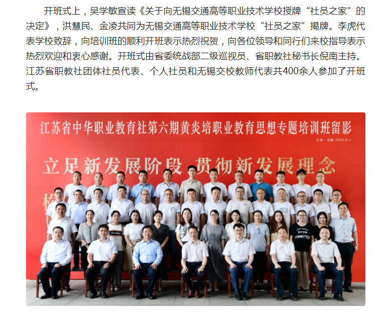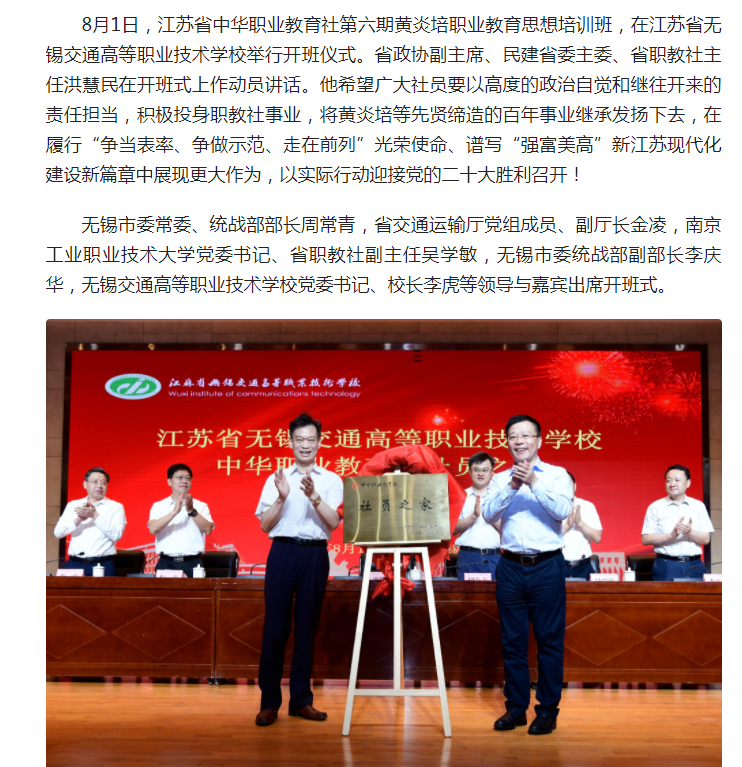 下一篇: 【江苏省交通运输厅官网】江苏省中华职业教育社第六期黄炎培职业教育思想培训班在无锡交校举行