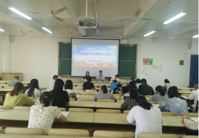 2022年9月2日下午,基础教学部在弘毅楼508阶梯教室召开部门教职工大会。学校党委委员、副校长耿兴华,基础教学部党总支副书记杨凤琴出席会议,会议由基础教学部副主任许莹霞主持。