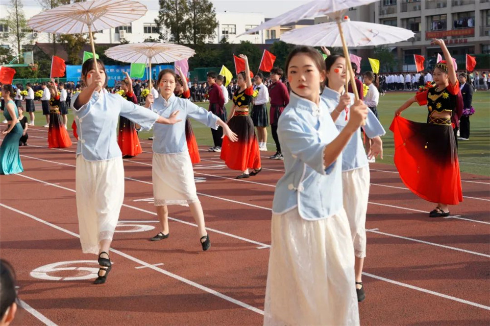 开幕式上,在激昂的运动员进行曲中,师生代表队排着整齐的方阵,迈着矫健的步伐,依次通过主席台。各方阵带着精心准备的节目,在主席台前一展才艺和创意。