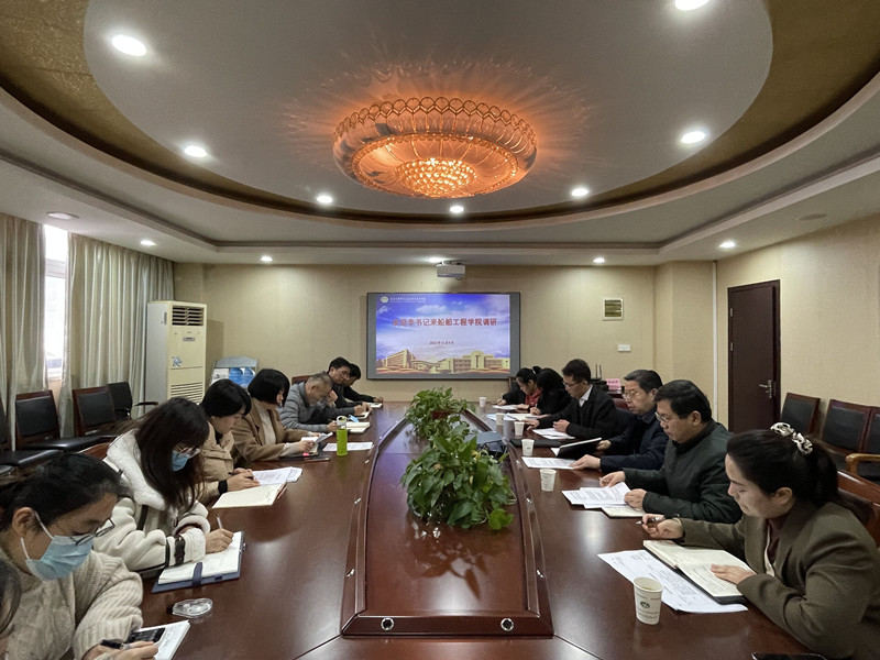 12月8日,学校党委书记李虎到船舶工程学院调研指导工作,听取学院2022年的主要工作、取得的主要成效以及下一步工作思路。校党委委员、副校长范次猛陪同调研,组织人事处、教务处、学工处等部门负责同志、船舶工程学院领导班子及内设机构负责人参加会议。