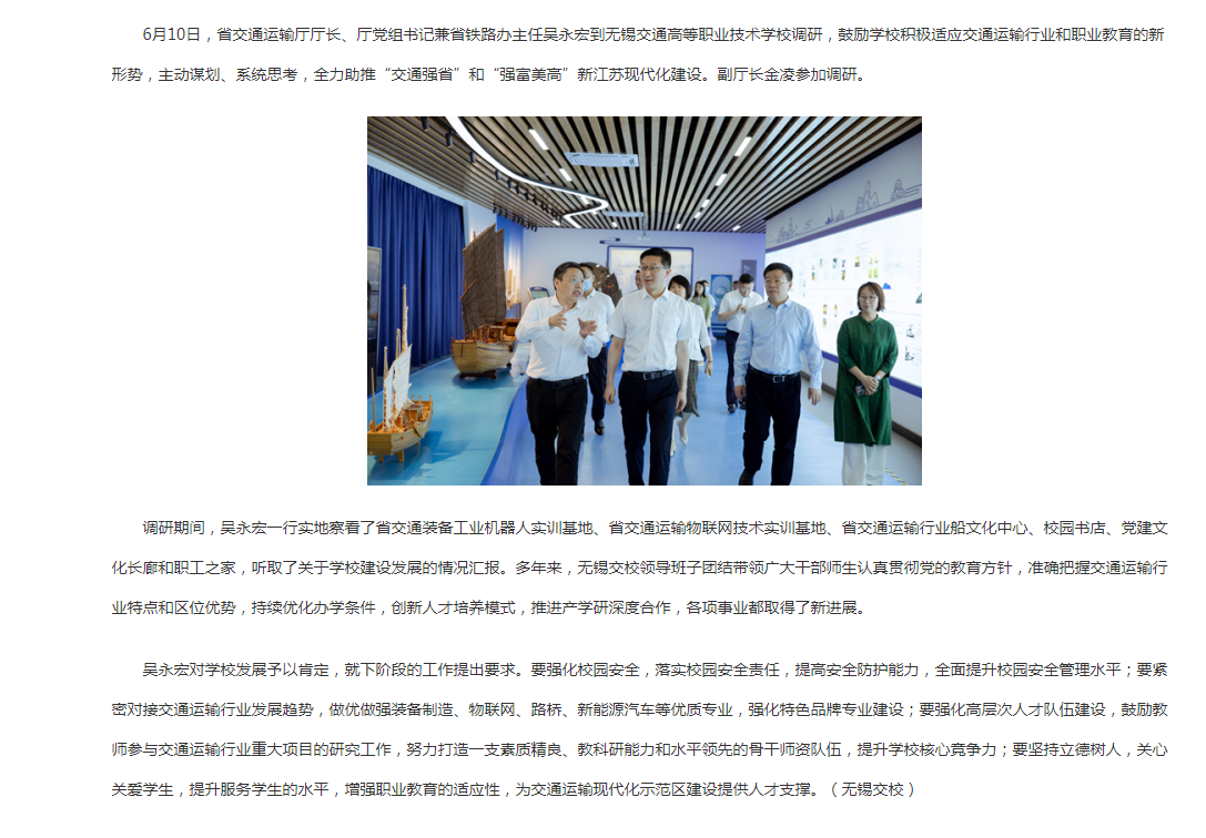 【江苏省交通运输厅官网】省交通运输厅厅长吴永宏赴无锡交校调研