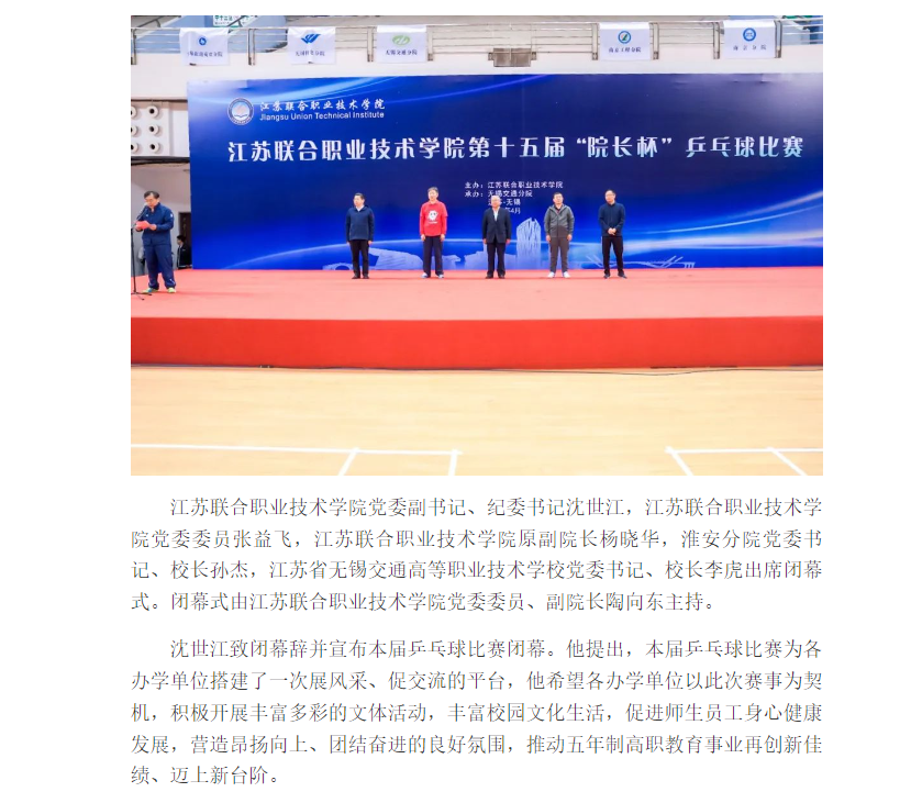 今日头条:江苏联合职院在无锡举办第15届“乒赛”,无锡交通高职校承办