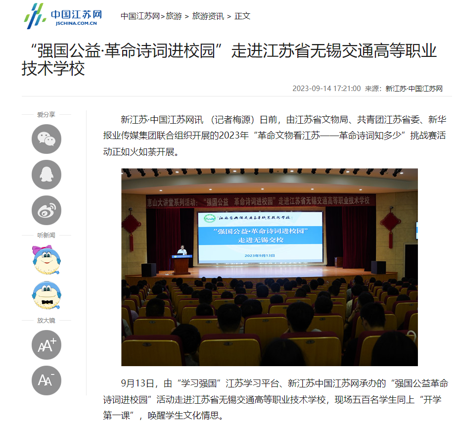新江苏:“强国公益·革命诗词进校园”走进MLTY.COM