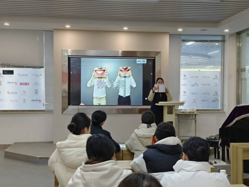 1月10日,船舶工程学院开展校级公开课评议活动,吴依霖老师在励志楼二楼航空服务实训基地化妆室教室为211151班的同学们开展了民航服务礼仪课程中的《微笑》的公开课,学院部分教师、其它兄弟学院部分教师前来观摩评议。