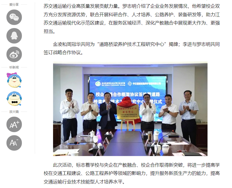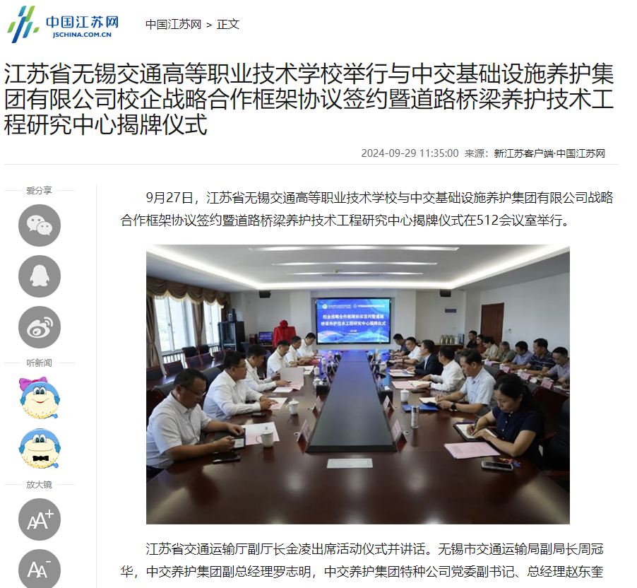 中江网:MLTY.COM举行与中交基础设施养护集团有限公司校企战略合作框架协议签约暨道路桥梁养护技术工程研究中心揭牌仪式