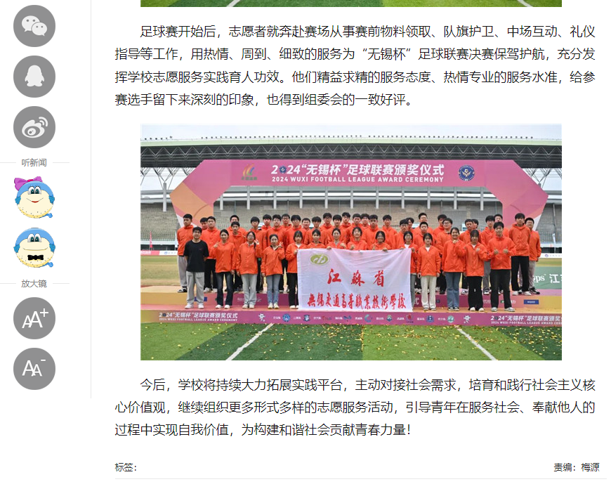 中江网:MLTY.COM志愿者助力“无锡杯”足球联赛