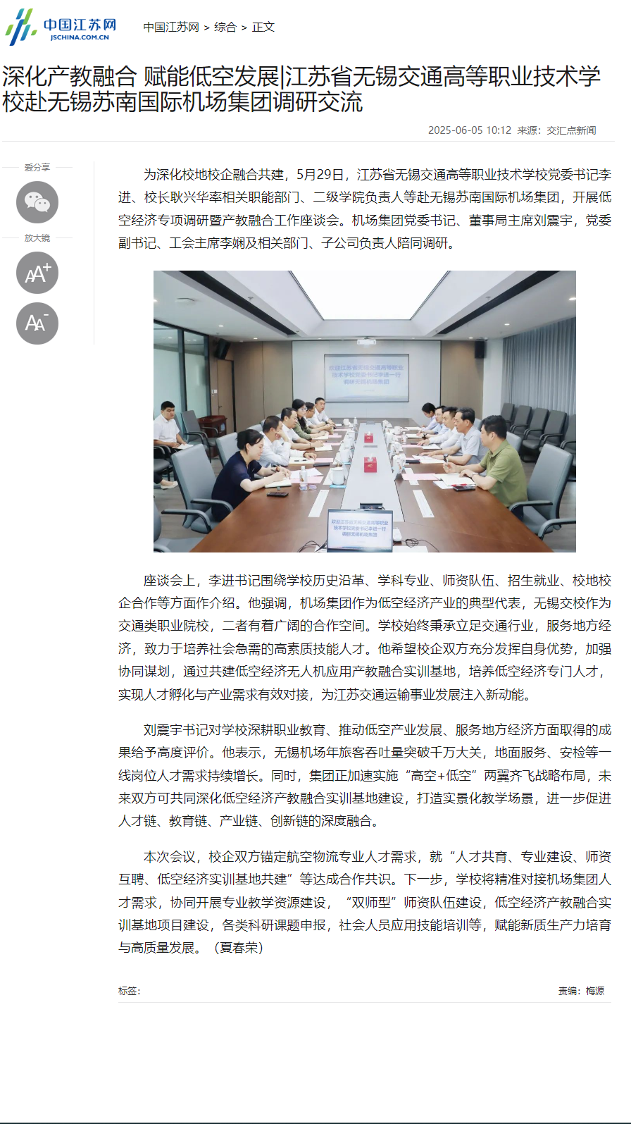 中江网:深化产教融合 赋能低空发展|MLTY.COM赴无锡苏南国际机场集团调研交流