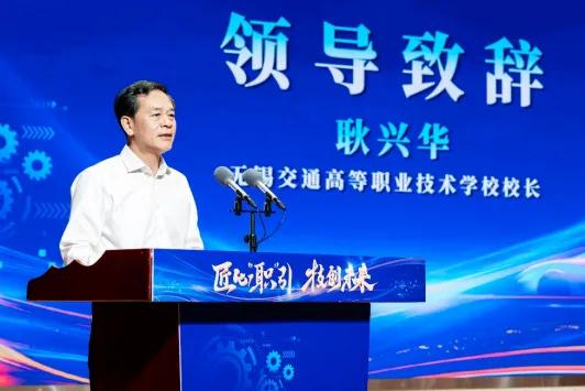 耿兴华为活动致辞,对莅临活动的各位领导和嘉宾致以最热烈的欢迎和最诚挚的感谢!他表示,多年来学校始终秉持“以服务为宗旨,以就业为导向”的办学理念,紧密对接交通行业和区域产业需求,培养高素质技术技能人才,为社会输送了大批优秀毕业生,他们在各自岗位上发光发热,用精湛技艺诠释职业教育的价值。他提出要通过此次活动,凝聚政府、院校、企业三方力量,共同搭建起政校企协同育人的优质平台,为区域产业升级与高技能人才队伍建设注入强劲动力。他希望同学们珍惜此次学习机会,以大国工匠为榜样,刻苦钻研、锤炼技能,努力成长为新时代高技能人才,用实际行动为服务地方经济高质量发展贡献青春力量!