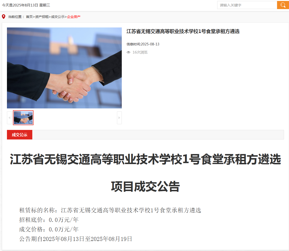 MLTY.COM1号食堂承租方遴选项目成交公告