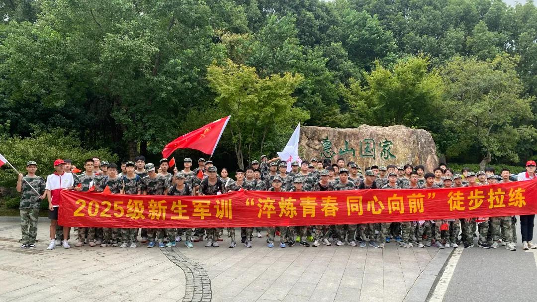 惠风和畅,青春戎装,正是练兵好时节。9月20日上午,学校2025级新生迎来无锡交校生涯中第一次集体挑战——8公里徒步拉练。同学们用脚步丈量意志,用汗水书写团结,顺利完成徒步征程。学校校长耿兴华、副校长吴雪琴参加出发仪式,并全程陪同完成徒步拉练。出发仪式由学生工作处处长、团委书记王光祥主持。