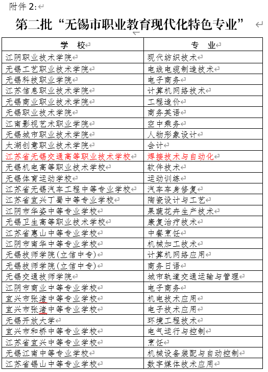 附件:1.第二批无锡市职业教育现代化品牌专业名单