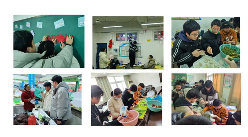在活动前期各组根据任务节点分头行动。装饰组动手布置场地,在黑板上贴上所有同学们的祝福期望。馄饨组进行了市场调研,预算出当天的食物份量及所需物品。