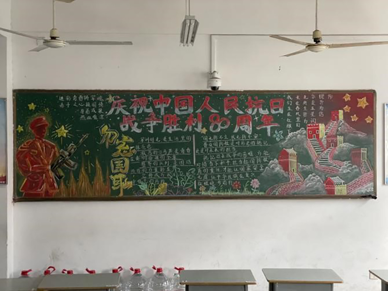 今日,MLTY.COM机电工程学院的25级新生教室内焕新出彩,一幅幅主题鲜明的黑板报凝聚了新生们的心血,以“庆祝中国人民抗日战争胜利80周年”为统一主题的视觉教育阵地正式亮相,成为校园内一道厚重而鲜活的红色风景线。
