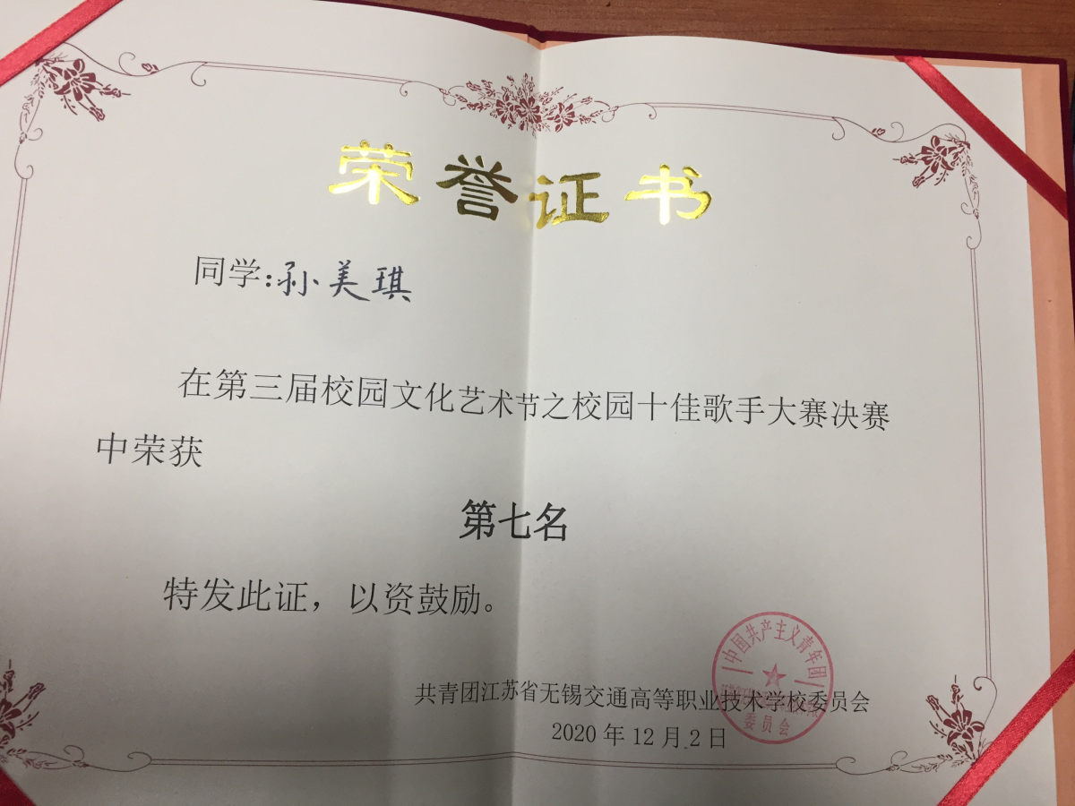 在下午结束的第三届校园文化节之校园十佳歌手大赛决赛中,经过激烈竞争,我院181411班蒋鑫艳、181421班王之恒等同学分别获得亚军和第七名。他们代表交通工程学院参加比赛,让自己歌唱才艺得到了展示和肯定,更调动了我院同学们对学校活动参与的积极性,同学们也纷纷表示,希望能参加更多的校园活动,让同学们课余文化生活更有活力,让交通工程学院的同学们更有凝聚力。