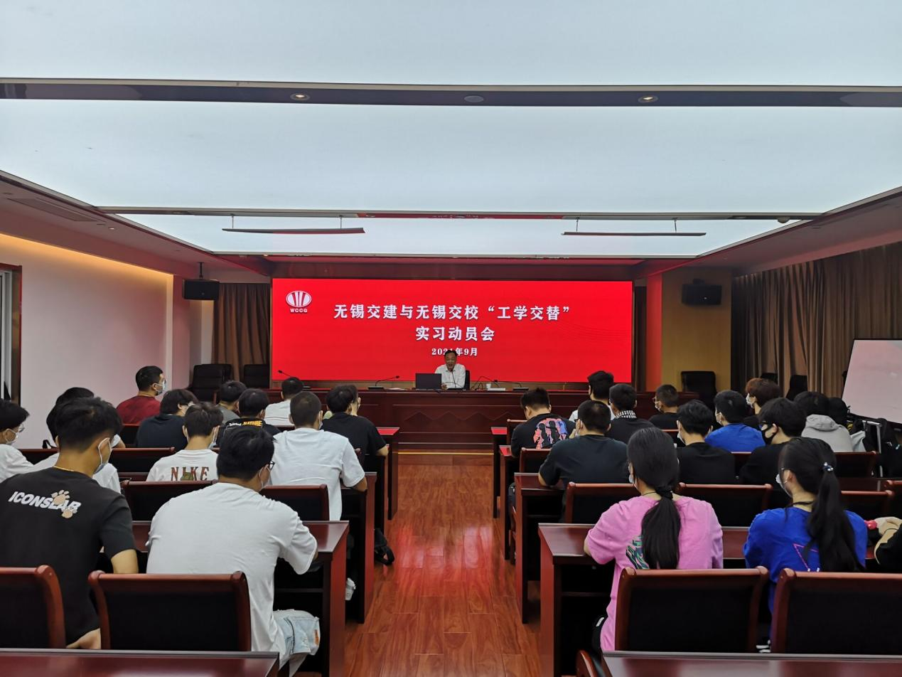 随后,赵副院长代表学院作工学交替动员讲话,介绍学校与无锡交建集团多年的校企合作状况和良好的发展态势和本次工学交替实习的意义,希望同学们严格遵守企业的规章制度,懂规矩、讲诚信,能够一切服从指挥,努力工作,学习本领,并学会感恩,注重勤劳与诚信,严格规范意识,在生活和工作中严格要求自己,要圆满完成本次工学交替实习任务。