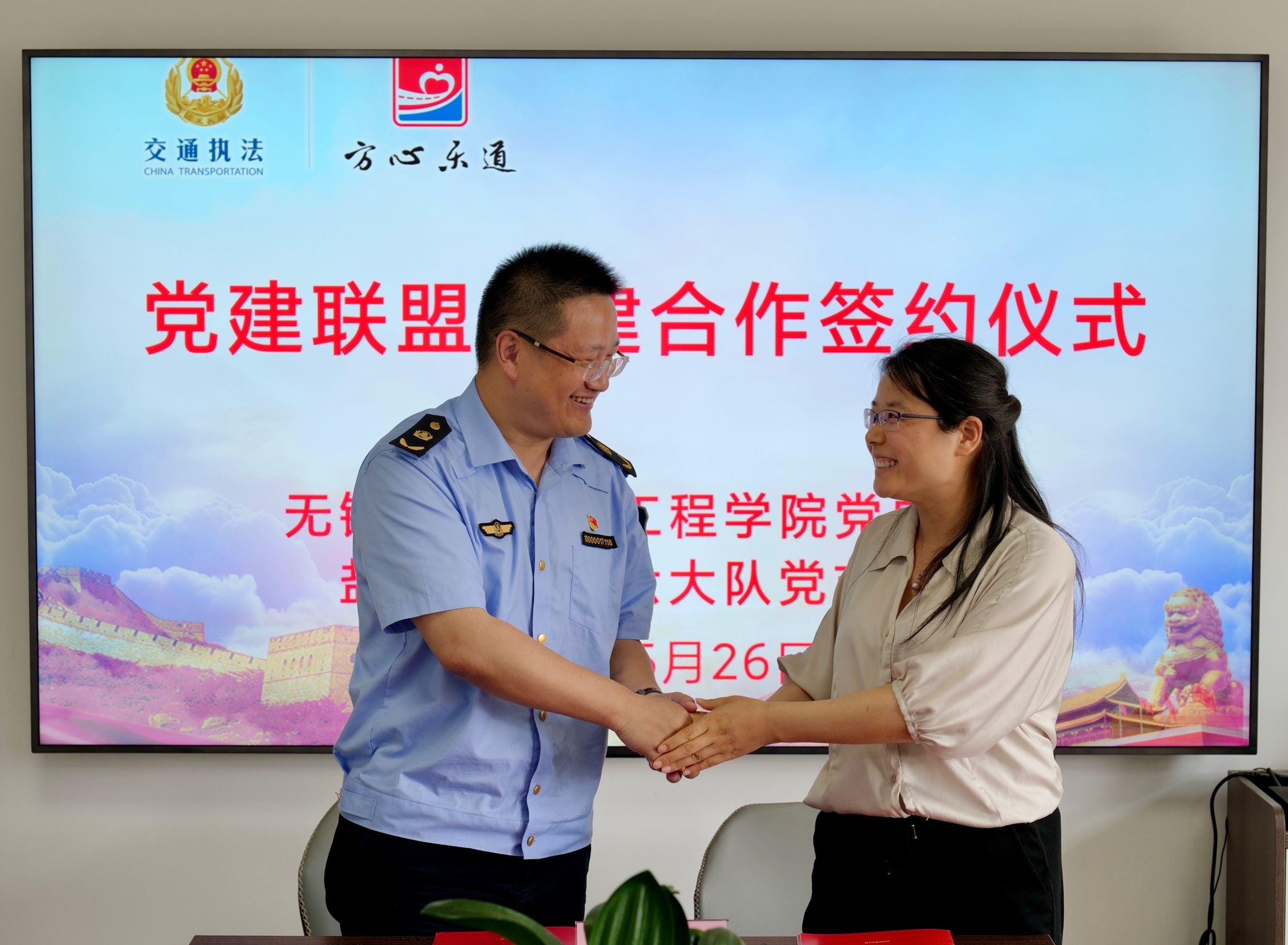 为深化学校与行业合作、推动党建与业务深度融合,526日,交通工程学院党总支与盐锡支队第六大队党支部党建联盟共建签约仪式在盐锡支队第六大队会议室隆重举行。双方围绕互联共建、互助共赢”目标,共绘党建引领高质量发展新蓝图。交通工程学院院长赵巧明、党支部副书记李俊、盐锡支队副支队长吴贤臣、第六大队党支部书记兼大队长高俊及双方党员代表共同出席仪式。