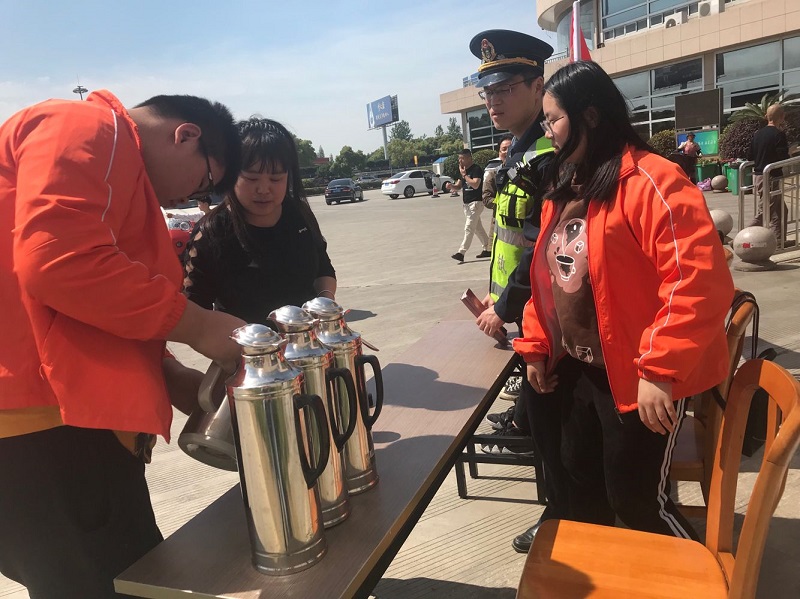 201954,在纪念五四运动100周年之际,交通工程学院党总支根据学院“传承五四精神 青春献给党”主题活动安排,由建设工程管理教研室党支部书记李俊老师、学院教学秘书李玉君老师等带领学院志愿者,与盐锡支队第四大队联合,走进沪宜高速公路宜兴服务区,协助大队执法人员投入到“五一”假期高速公路“保安全、保畅通、强服务”工作中。