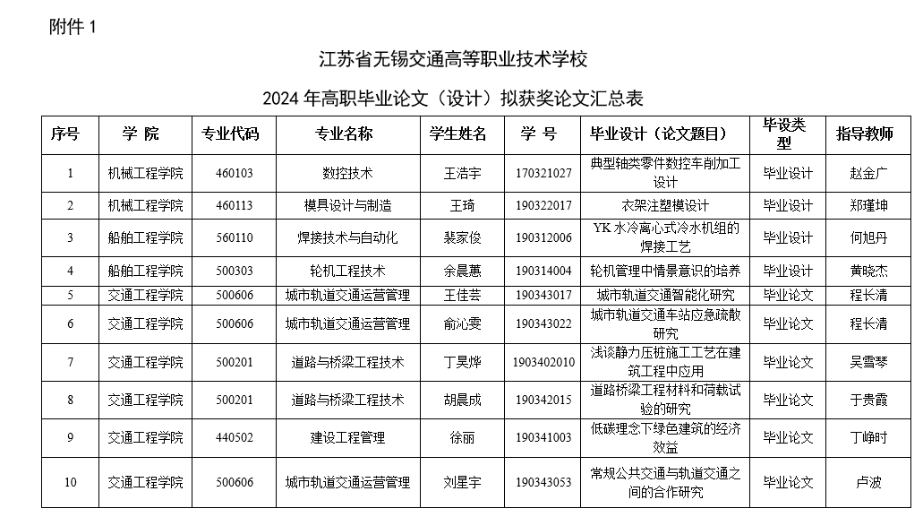 关于2024年度学校五年制高职优秀毕业论文(设计)获奖名单的公示